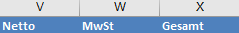 In Spalte V steht die Nettosumme der einzelnen Gesamtwerte der Bestellpositionen, aus der die MwSt und danach die Gesamtsumme berechnet wird.
